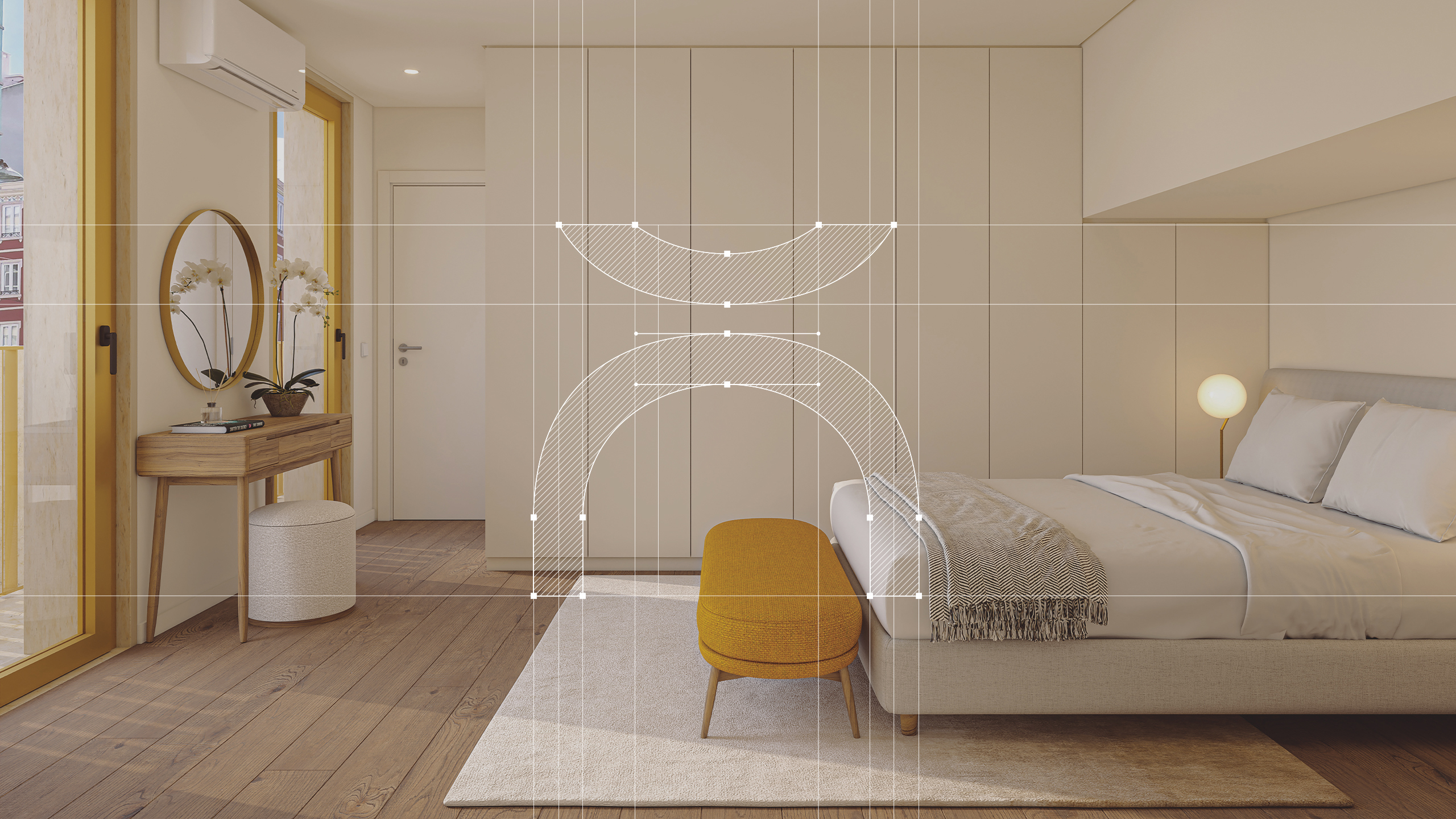 The visual identity merges the letters U and T into a bold geometric symbol inspired by the building’s curved façade. A vibrant palette of yellow, black and gold creates strong contrast and urban warmth. Hyper realistic 3D renderings enhance this atmosphere, while the brochure and floor plans were designed with graphic precision, structured grids and refined typography to ensure clarity and visual consistency.